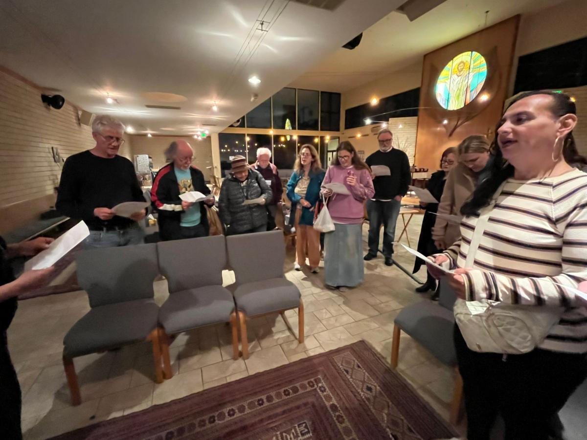 After the meal, parishioners gathered in the Good Shepherd Chapel to "Bury the Alleluia" as a symbolic Christian tradition observed before Lent (often on Transfiguration Sunday or Shrove Tuesday) to mark the beginning of a somber, penitential season. The box of "A” word papers was carried upstairs by Ash Murray who, following the prayers, “buried” the box under the chapel altar. Traditionally congregations literally or figuratively hide, lock away, or "bury" banners/letters spelling "Alleluia" and eliminate the word from worship, only to resurrect it during the Easter Vigil when the congregation celebrates Christ’s resurrection, rejoicing and praising God. So, during Lent, don’t say the “A” word!