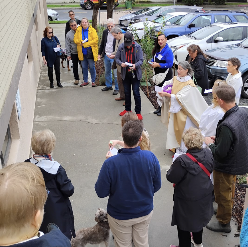 Bishop John Harvey Taylor welcomed those attending the diocesan Climate Evensong, created by seismologist Dr. Lucy Jones, senior warden at St. James, South Pasadena. Officiating was the Rev. Carri Patterson Grindon, rector of St. Mark’s Church in Altadena, which was destroyed in the Eaton fire.