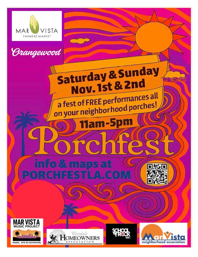 Saturday, November 1st & 2nd: Porchfest LA Live Music Events (see flyer below)