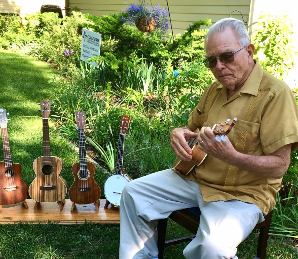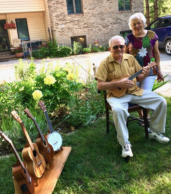 Tom Barton and his wife Betty enjoy sharing flowers from their garden in Ames. This garden apparently also grows ukuleles!