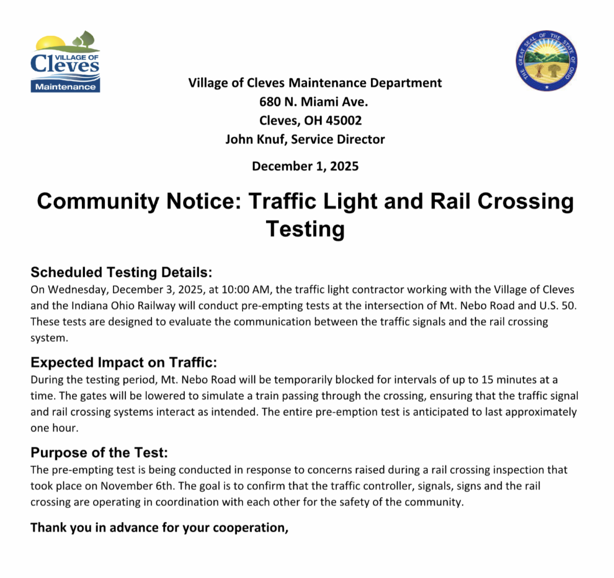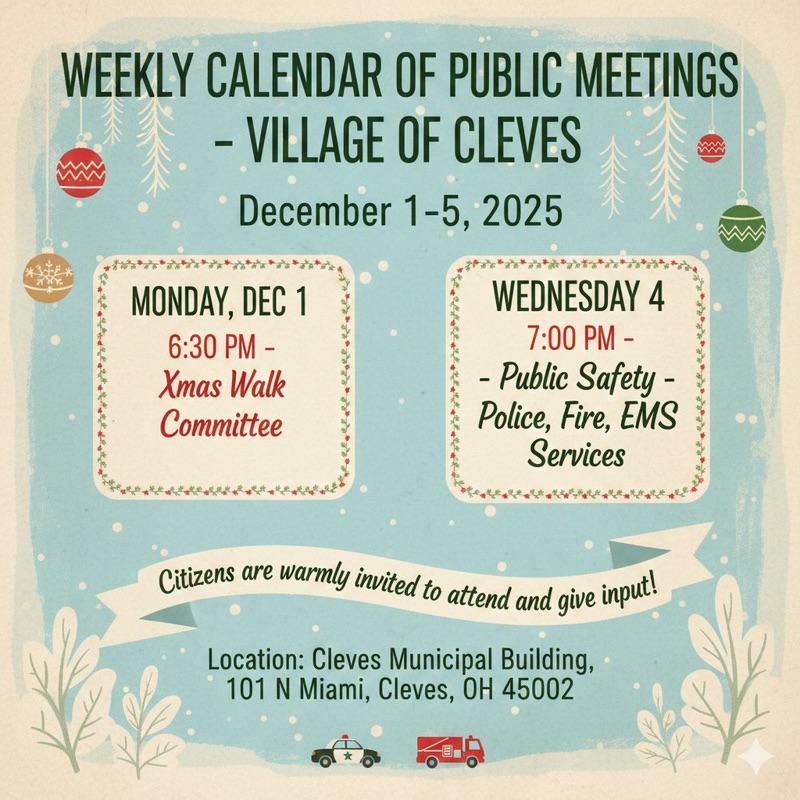 We look forward to celebrating with you and making this year’s Cleves Christmas Walk in the Village a joyful gathering for all.