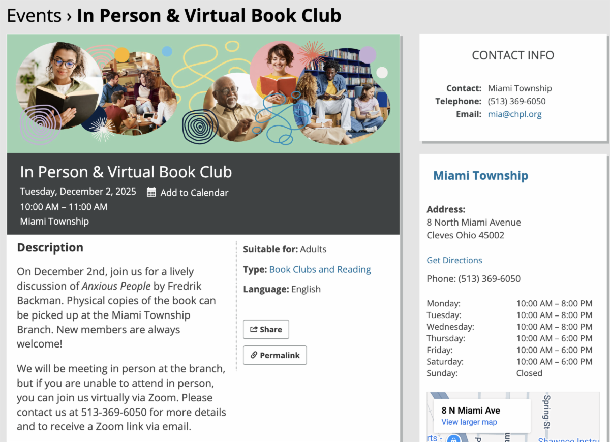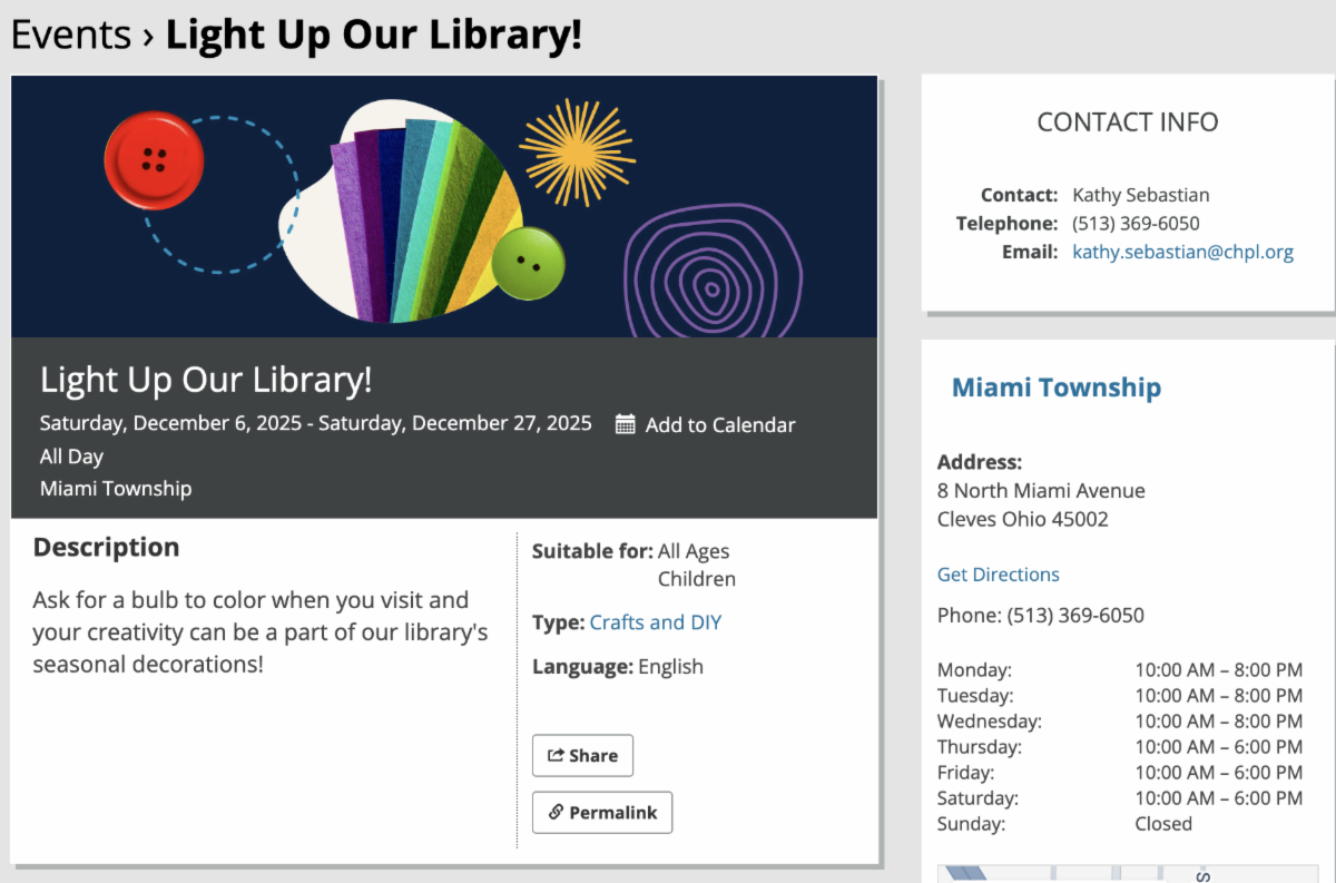 - Craft fairs at the Miami Township Town Hall and the Miami Township Senior Center