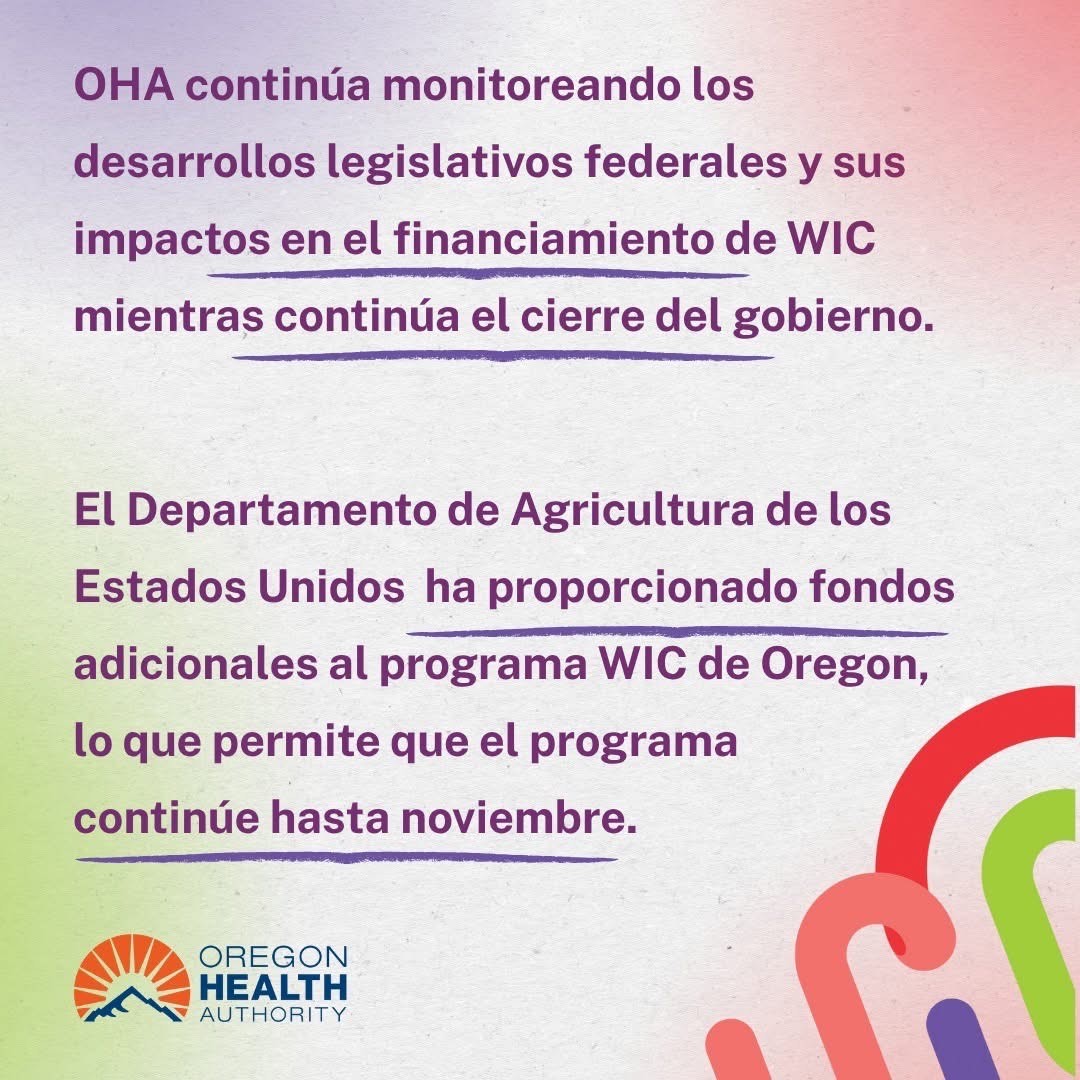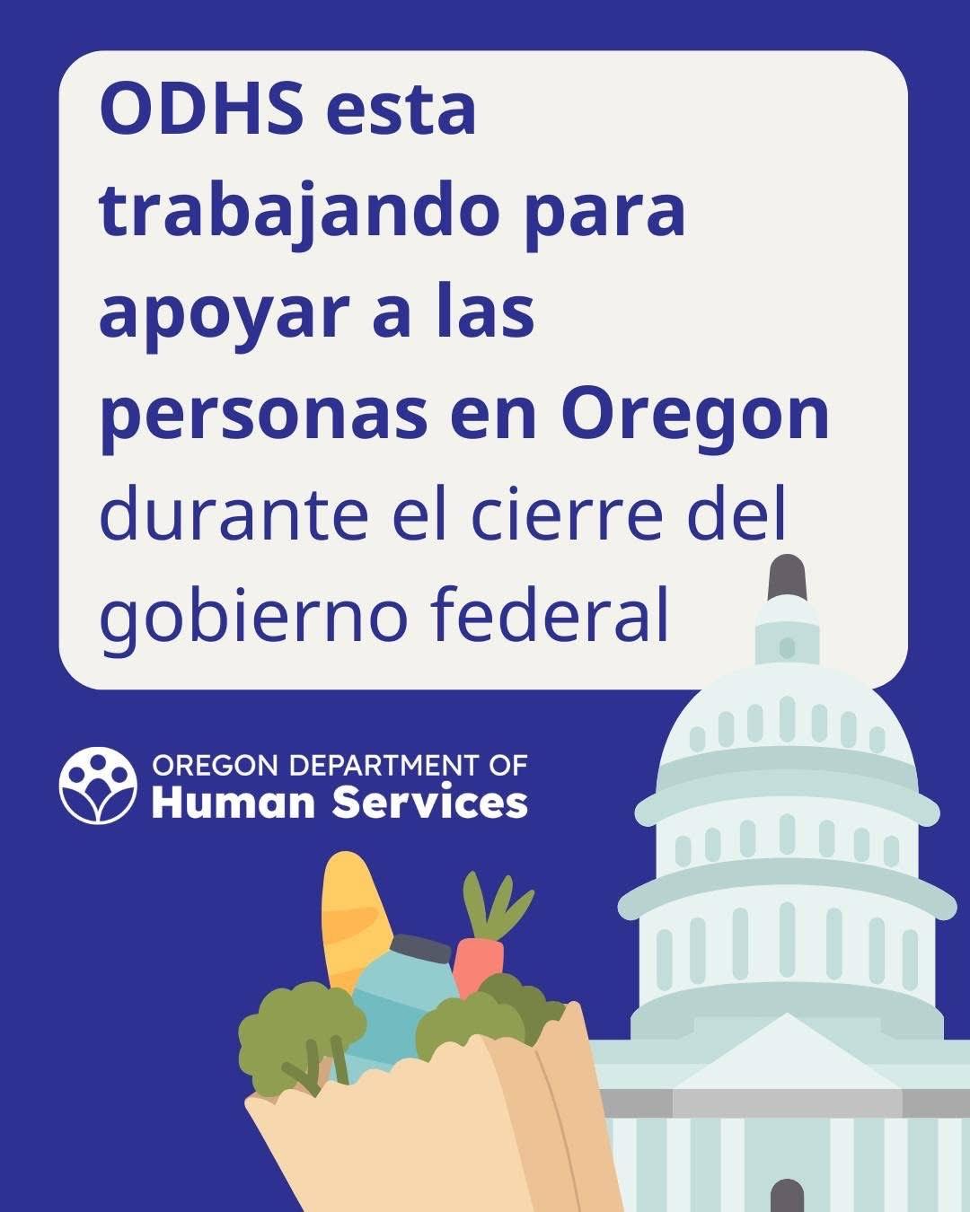 El Departamento de Servicios Humanos de Oregon (ODHS) está liderando la coordinación estatal de los programas de asistencia alimentaria y continuará proporcionando actualizaciones sobre posibles retrasos en los beneficios de SNAP y los recursos disponibles. Si no se pueden emitir los beneficios de SNAP de noviembre, los participantes no recibirán avisos por correo como podrían esperar. Mantente al día con los siguientes recursos: