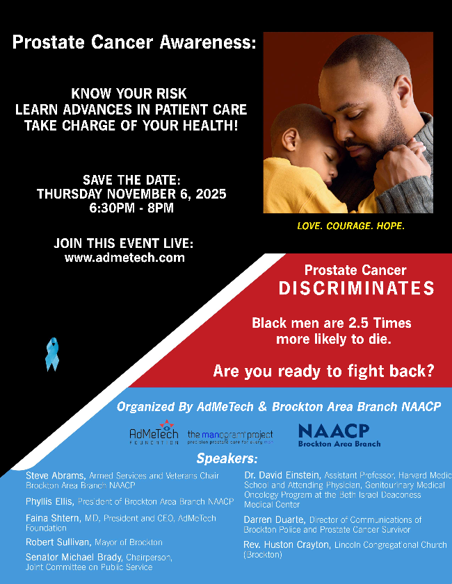 The NAACP Brockton Area Branch and AdMeTech Foundation presented a Prostate Cancer Awareness and Education Virtual Forum on Thursday November 6, 2025.