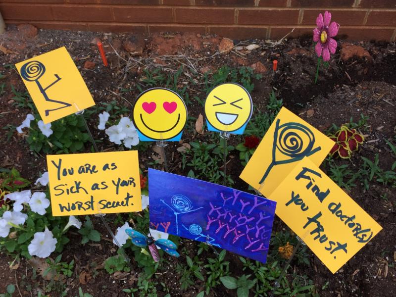 If the flower beds in your place of worship are available, consider using them for clever messaging. Consider giving faith based mental health an open door. This is an easy way for an introduction of mood facts, using those silly emoticons to talk about emotional discipline during school, or even introducing big topics like alcoholism. I used some of those flower card holders from a florist, but there are scores of ways to hold messages up. Again, make it cute. Make it engaging. It's very effective to make a tough topic (and a new topic to many) like addiction or trauma into a soft setting. This qualifies. Need content? Send me an email, buy a DSM, or go to NAMI.org. Ask a person with an Alt-Brain what they would like to share.