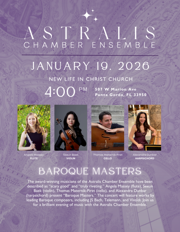 We are looking forward to a very special event in the new year, the Astralis Chamber Ensemble! They will perform a free concert in the sanctuary on Monday, January 19 at 4pm. We are in need of families to host the musicians for one night (1/19/26) - 2 females and 1 male, with a meal provided.