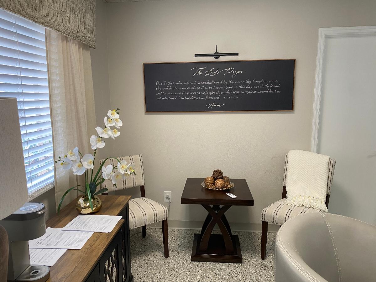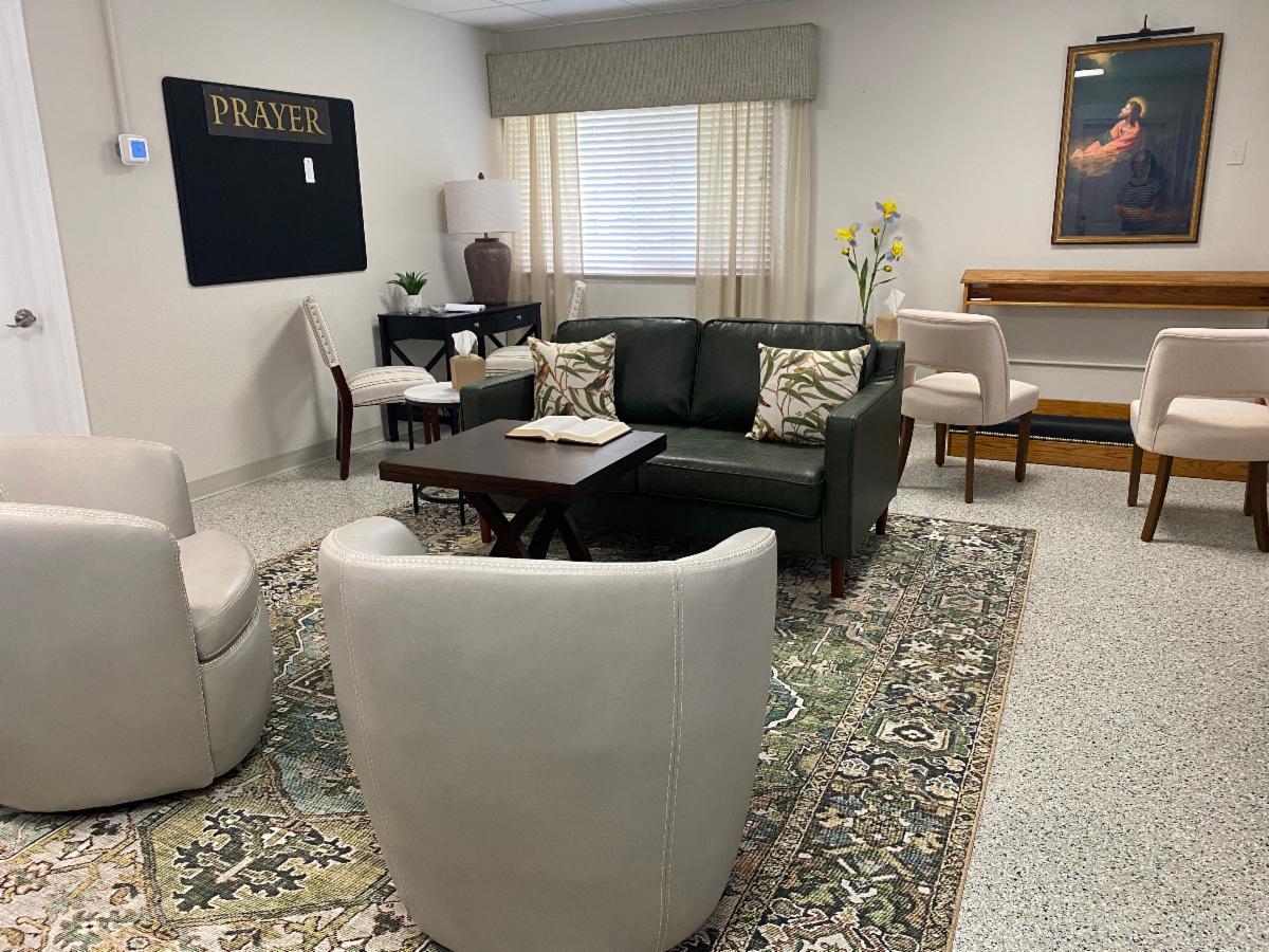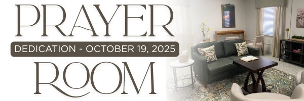 Our Prayer Room has been beautifully restored through a generous gift from the Moenning family — given in memory of Mrs. Jean Moenning and in honor of Dr. John Moenning.