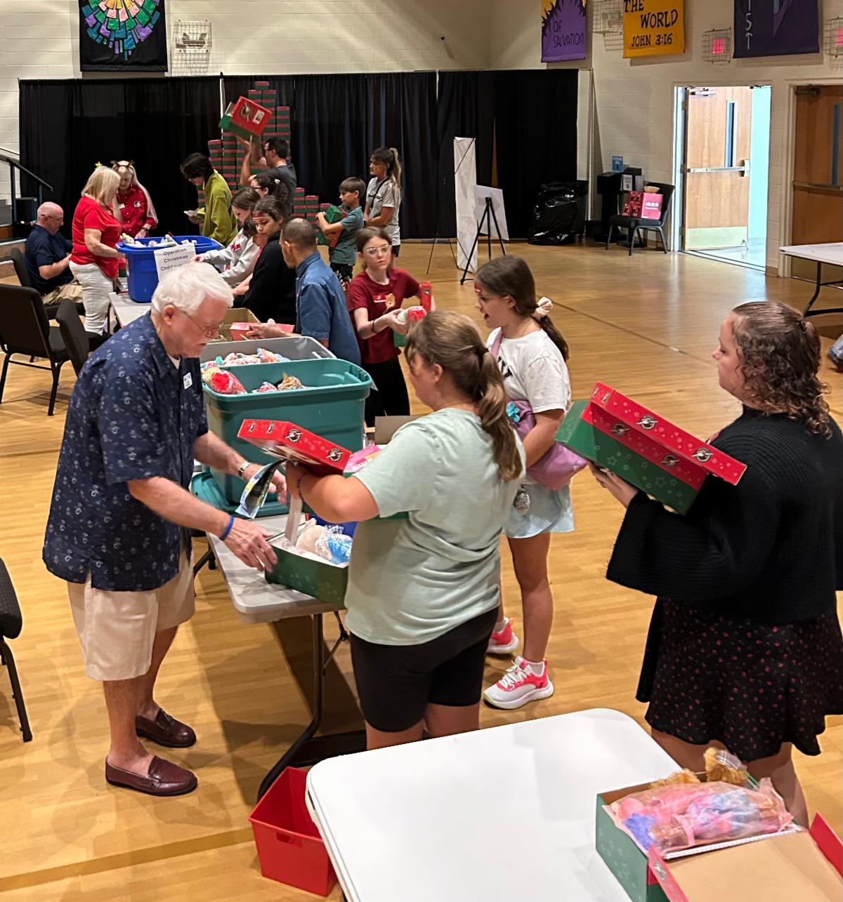 Last Sunday night our teens hosted their Annual shoebox the packing party. Together we packed 138 Shoeboxes a new record for this event! In attendance were approximately 80 students, parents, members of our church, and even our community at large came out to support this event. They had a great time packing Shoeboxes while to listening to Christmas music. Everyone enjoyed the fellowship around the table as they wrote special notes for the child receiving the shoebox.