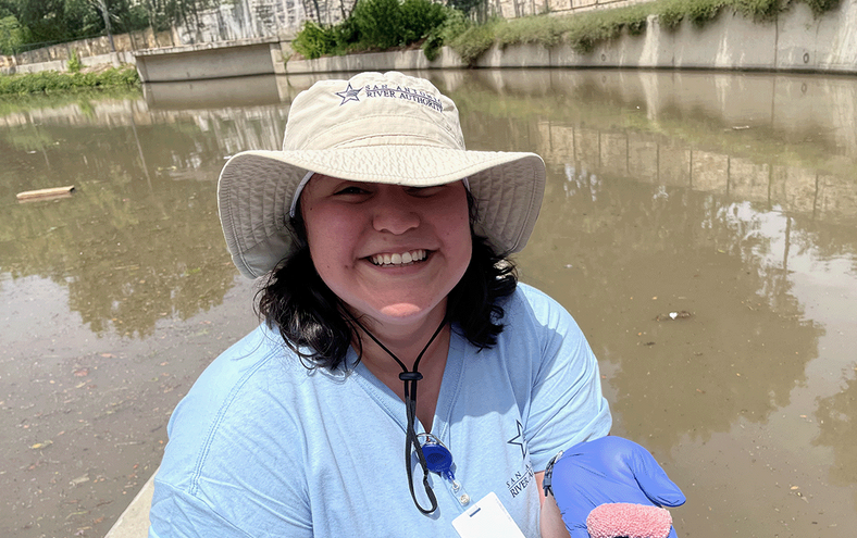 Angelica Canizalez, a graduate student in the Water Resources Science and Technology program, has parlayed her internship at the San Antonio River Authority into a full-time job as a water quality scientist. Canizalez, who graduates in December, now helps safeguard the region’s waterways and maintain the region's natural beauty.
