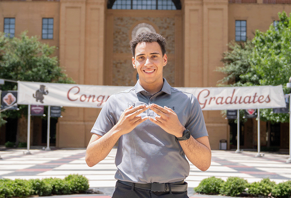 Jerrome Hamilton, a first-generation student and military-connected senior, graduated with a degree in international business management and a legacy of leadership. From building up the ROTC presence on campus to serving as president of his fraternity, Hamilton’s time at A&M-San Antonio has been marked by transformation and service. He’s now set to pursue his dream of becoming a medevac pilot for the U.S. Army.