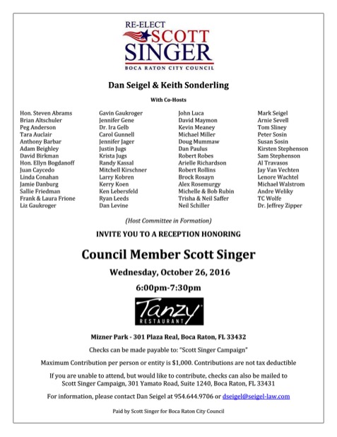 Special guest speaker will be Sid Dinerstein, former Chairman of the Palm Beach County Republican Party, who will g