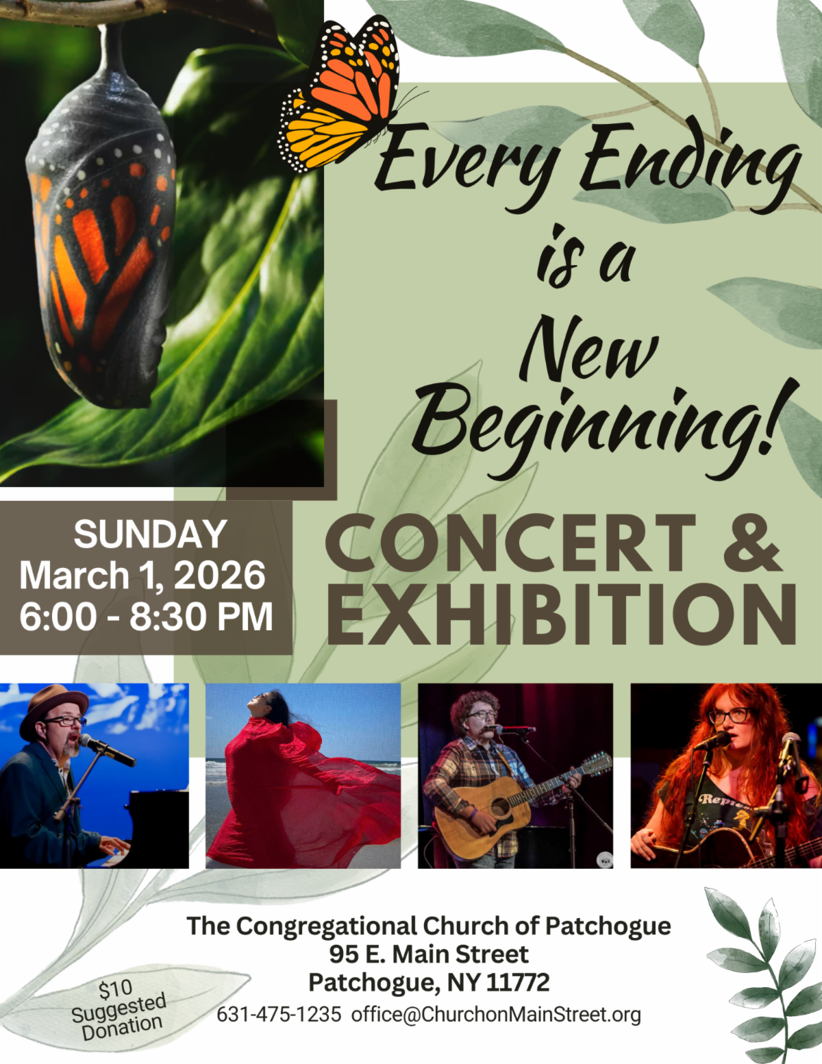 Save the date to join us for an exciting concert, performance, and art exhibition that will remind us to celebrate and contemplate our vision of what may emerge next! Art Exhibit opens at 6 p.m; Dancer and Concert from 7 – 8:30 p.m. There is a $10 suggested donation. Everyone is invited.