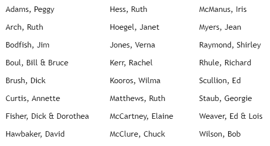 THE MEMORIAL COMMITTEE is asking the congregation for help in identifying family members of the following names. If you know a family member's contact information (such as phone number or email address) or just a family member's name, we would like you to pass it on to: