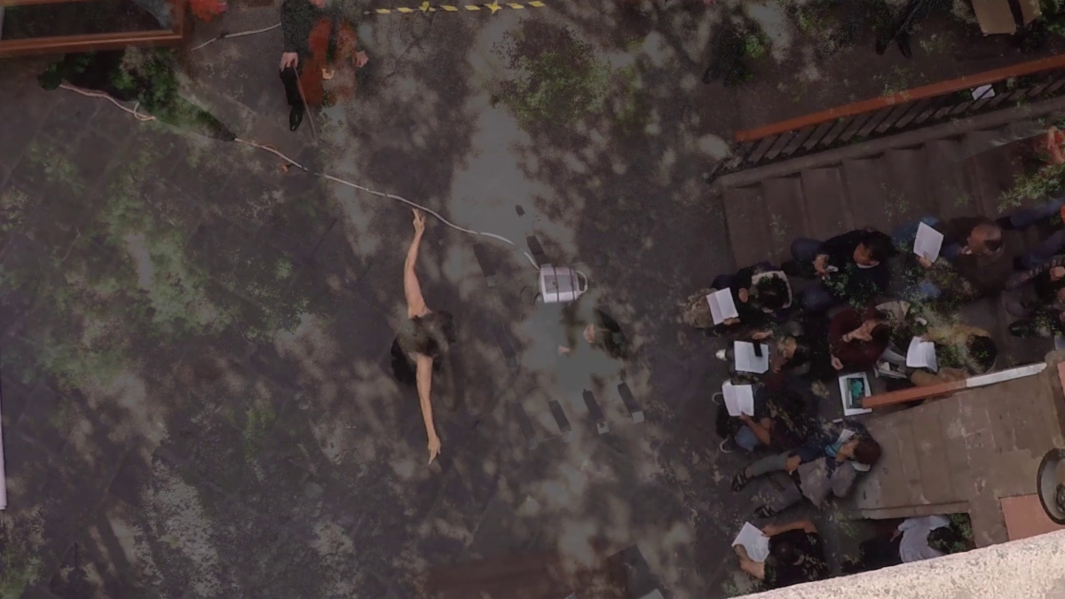 From the introductory drone footage to the multiple mobile GoPro operators to the video projections (incorporating the viewpoints of projectionist, film characters, and green-screen footage of Clara, inset, contemplating these filmed human, animal, plant, and inanimate actors), to Clara viewing these projections of herself and others, upside down, in an extended yogic headstand pose during the performance, and passing by way of the live audience's and viewers' kinaesthetic responses to the dancer's expression and their visual experience of witnessing the dancer's and ambulatory cellist's calls and responses, Henhawk is multiplicative of embodied and technical gazings, explicit and implicit, inside and outside the reference frames of physical site, camera, and screen. We are thus invited to Thoreauvian wakeful contemplation of "what [we] see" and of the infinity of our ways of seeing.