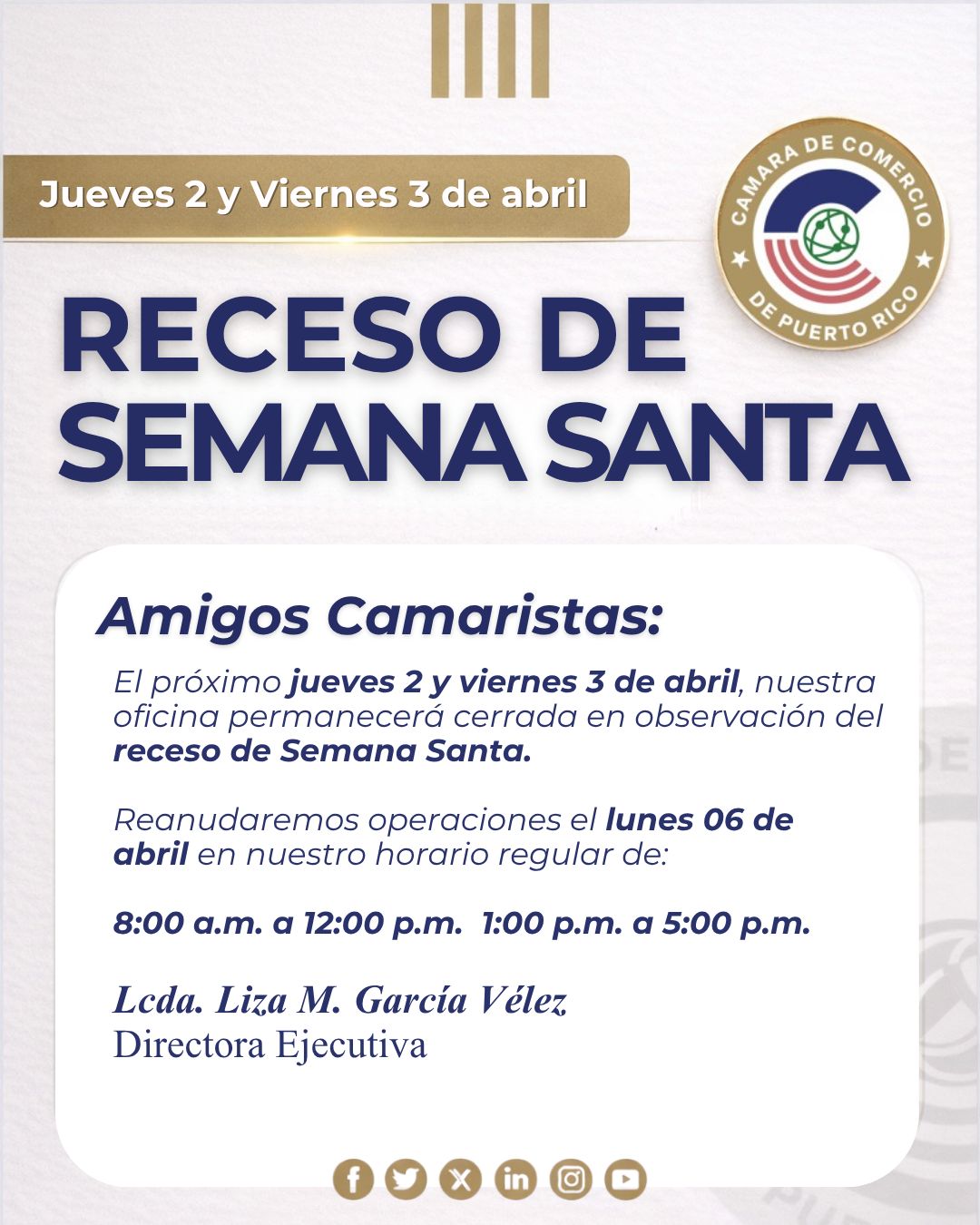 Hi, just a reminder that you're receiving this email because you have expressed an interest in Cámara de Comercio de Puerto Rico. Don't forget to add camarapr@camarapr.net to your address book so we'll be sure to land in your inbox!