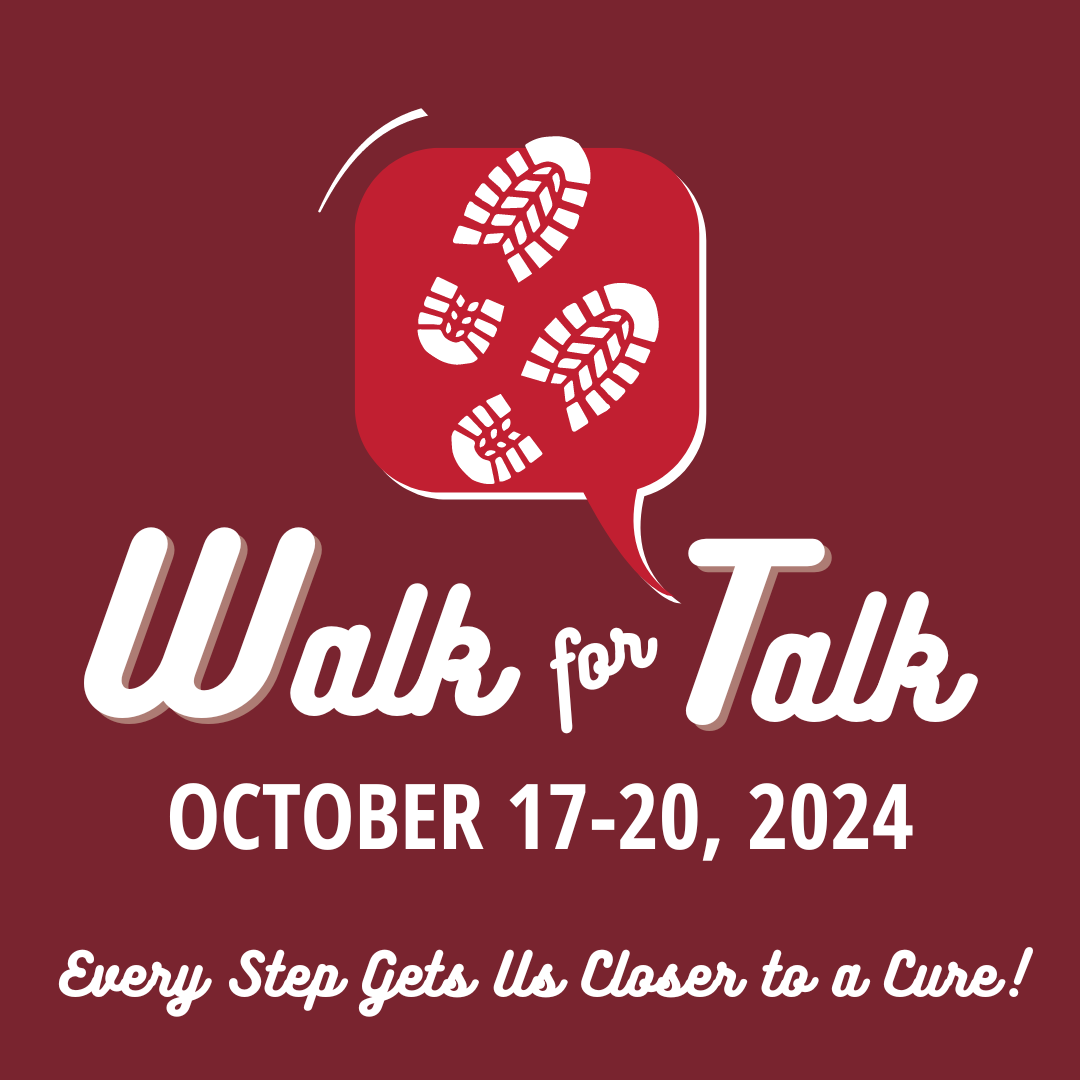 We Walk for Talk each October to raise awareness and funds for voice research. Every step gets us closer to a cure!