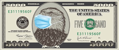 So, get ready… The $5,000 bill is coming to America, too. Perhaps it will have a picture of a masked eagle on one side… and the hero of the War Against COVID-19, Anthony