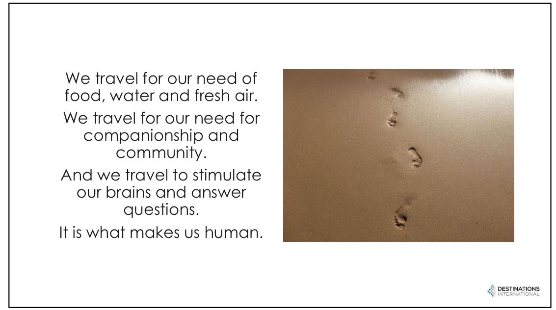Jack reminded us that travel is in our DNA and that the history of mankind is also the history of travel. Because we innately desire to know, '...what's over that hill", mankind is built for endurance. We are meant to travel.