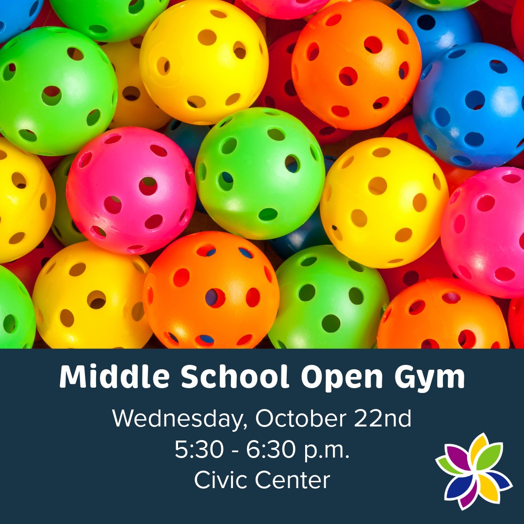 Middle schoolers are invited to a fun Open Gym Pickleball Night on Oct. 22 at the Civic Center Gym in Batavia. Enjoy games, music, and snacks. New or experienced players are welcome. Pre-registration is required and participants should bring their own paddle (a limited number of paddles will be available).