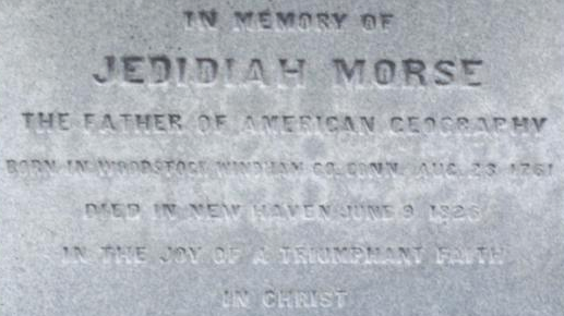 Jedediah Morse -- The Father of American Geography -- Born in Woodstock, Windham Co. Conn. -- Aug. 23, 1761 -- Died in New Haven, June 9, 1826 -- In the Joy of a Triumphant Faith in Christ"