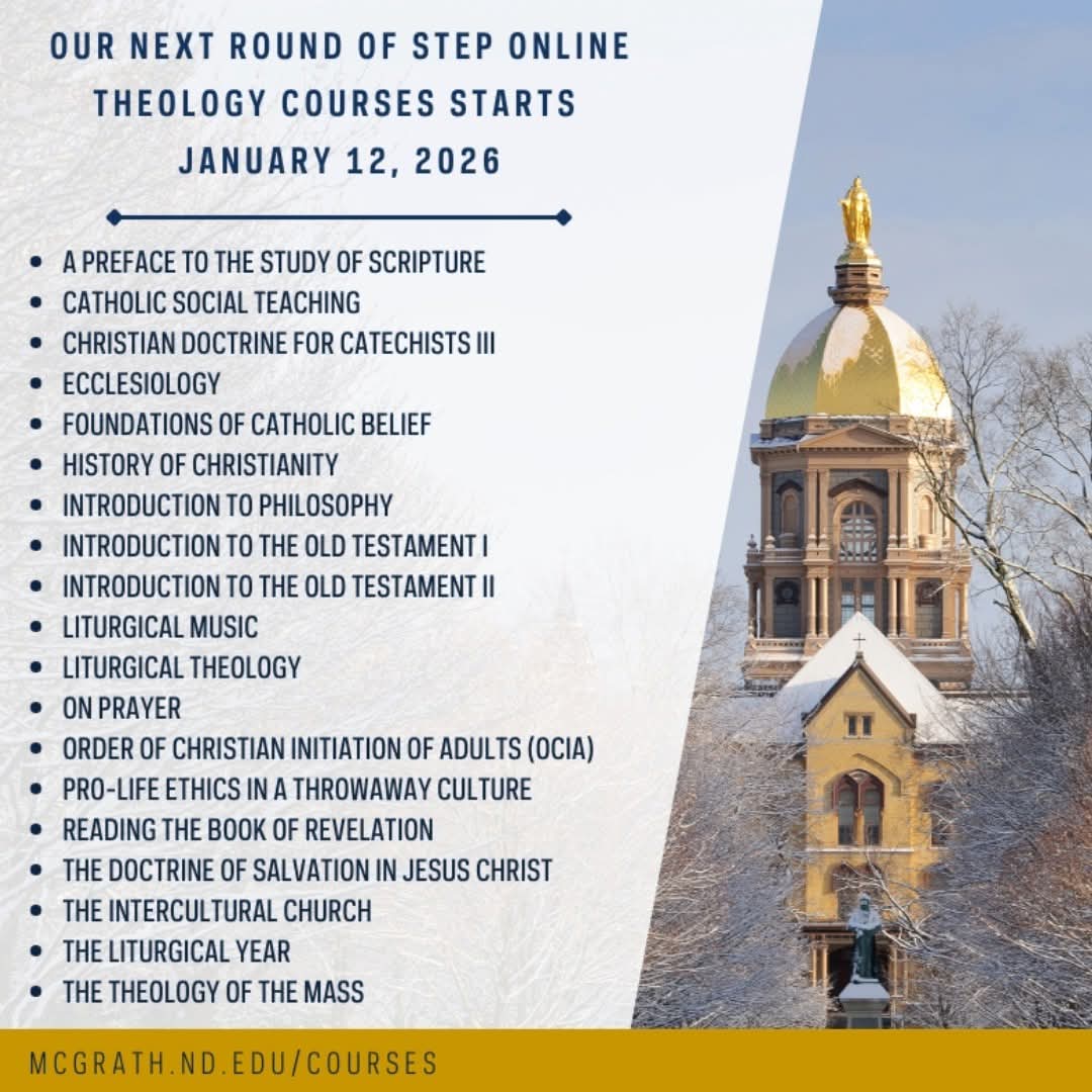 The course will start on January 19. The link is below. Please make sure you choose the Diocese of St. Augustine as a partner in order to receive the 50% off. The OCF reimburses the cost of this class with receipt of completion. This course also counts as Level III continuing formation. The course runs 4 weeks, approximate time is 25 hours of contact.