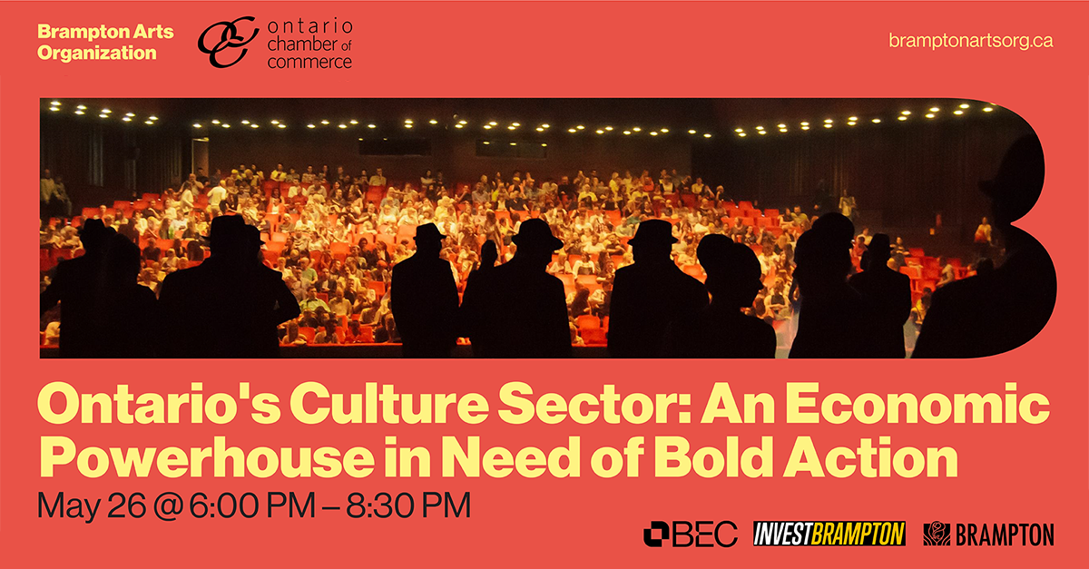 We invite you to connect with fellow business, government, and arts leaders, enjoy local food and music, and explore how arts and culture can fuel Brampton's economic future.