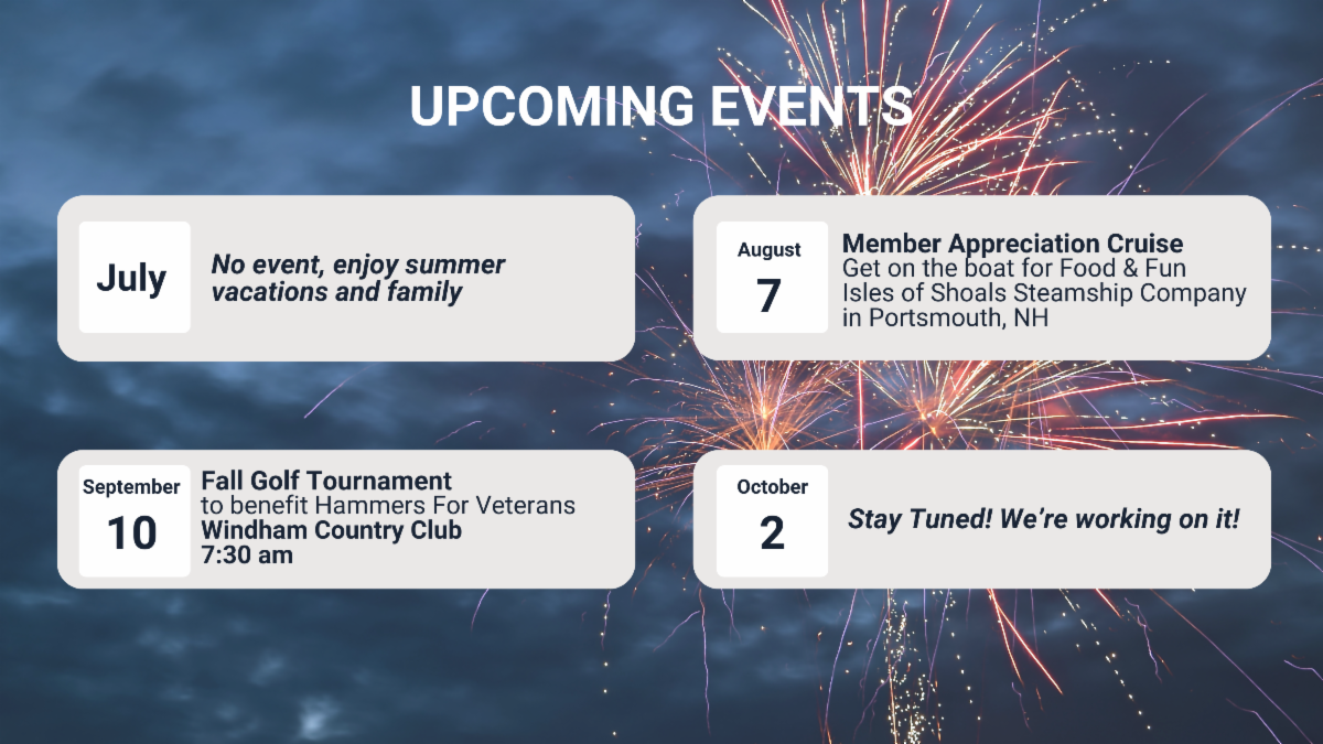 August brings you a super fun and really great opportunity in our first Harbor Cruise with the Isles of Shoals Steamship Company in Portsmouth. This member appreciation event features a lot of great stuff: dinner buffet, cash bar, great networking, free on-site parking, music, and more!