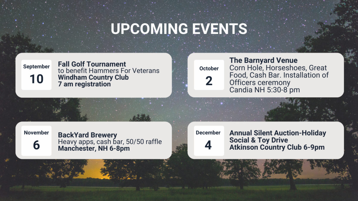 October has us at the Barnyard in Candia again this year for our Board Installation. We hope you can make it to this great event. We’ll have a super special guest coming to swear in our new board. Please come and meet them and cheer them on. I can say, without a doubt, that this board works super hard for our membership and we are grateful to serve you. Thanks for your support!