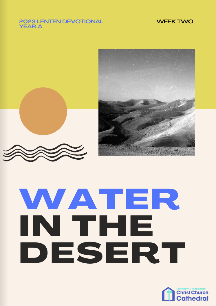 For each of the 40 days of Lent, the Liturgical Arts Collective asked members of the cathedral community to read, reflect on, and respond imaginatively to their appointed scriptures for that day from the lectionary, holding in mind a general theme of unexpected sustenance in desolate places, or "water in the desert." This devotional is the result.