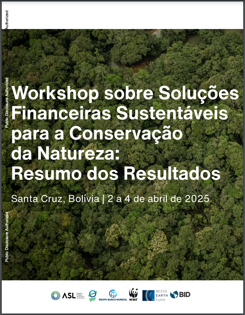 | | Histórias do Programa Regional ASL | | Já estão disponíveis os relatórios da 7ª Conferência Anual da ASL e do Workshop sobre Soluções de Finanças Sustentáveis para a Conservação da Natureza | | A 7ª Conferência Anual do ASL reuniu 100 participantes em Georgetown, Guiana, em março, para refletir sobre uma década de impactos na conservação da Amazônia e no desenvolvimento sustentável, marcando os 10 anos da ASL desde sua aprovação pelo GEF. O encontro também foi uma oportunidade para troca de experiências, fortalecimento de capacidades e planejamento de ações conjuntas. | | | Coorganizado pelo Banco Mundial/ASL, WWF, BID e o Bezos Earth Fund, o workshop reuniu mais de 90 especialistas em abril, em Santa Cruz, Bolívia, para discutir estratégias inovadoras de financiamento para a biodiversidade na América Latina e no Caribe, com ênfase na colaboração, no fortalecimento de capacidades e no alinhamento com a Meta 19 do Marco Global da Biodiversidade. | | | ASL participa de diálogos globais | | Nesse trimestre, a equipe do ASL marcou presença em importantes eventos regionais voltados à conservação florestal. | | |