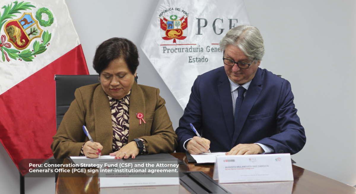 Conservation Strategy Fund (CSF) e a Procuradoria-Geral da República do Peru assinaram um acordo de cooperação interinstitucional para combater a mineração ilegal de ouro utilizando a Calculadora de Impactos do Garimpo (MIC) da CSF, uma ferramenta que estima os danos ambientais. O Peru se torna o segundo país amazônico, depois do Brasil, a adotar formalmente o MIC, que está sendo ajustado com dados locais e apoio de parceiros da conservação. A colaboração busca fortalecer as respostas legais e técnicas aos crimes ambientais na Amazônia. Foto: Conservation Strategy Fund