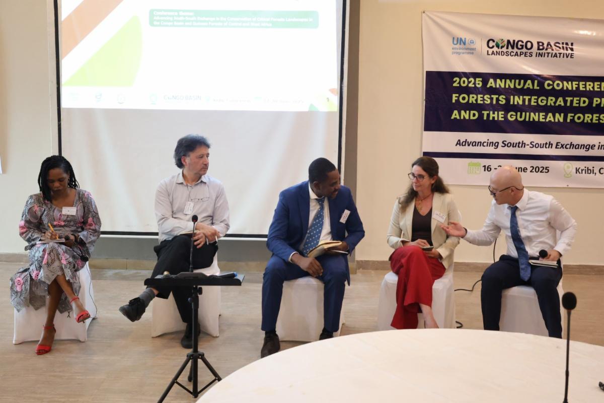 - a Conferência Anual dos Programas Integrados de Florestas Críticas financiados pelo GEF nas regiões da Bacia do Congo e das Florestas da Guiné, realizada em Kribi, Camarões (à direita)