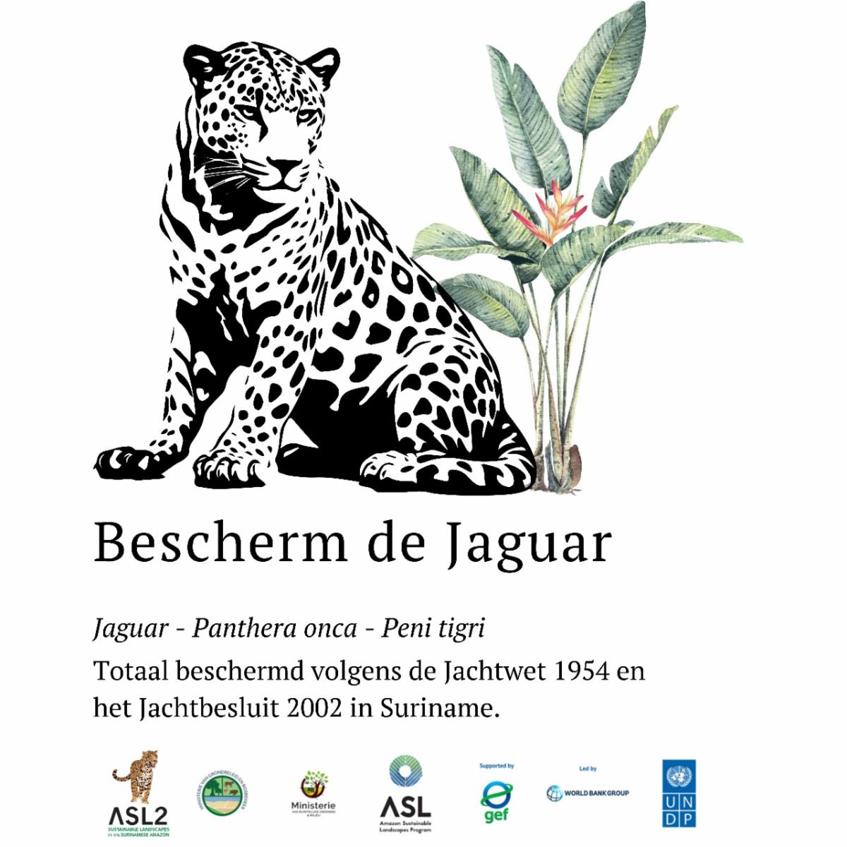 A organização Wildlife & People Suriname, com apoio do Projeto ASL2 no Suriname, lançou uma Campanha de Sensibilização para a Conservação da Onça-Pintada, com o objetivo de promover a convivência sustentável entre humanos e onças nas regiões de Saamaka-Matawai e Coeroeni-Paroe. A campanha envolve ativamente as comunidades locais — especialmente crianças e caçadores — para reduzir conflitos entre pessoas e fauna silvestre e destacar o papel ecológico da onça-pintada.