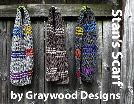 A scarf that I knit many years ago for my father, Stan Hayes, is the inspiration for our Stan's Scarf pattern.