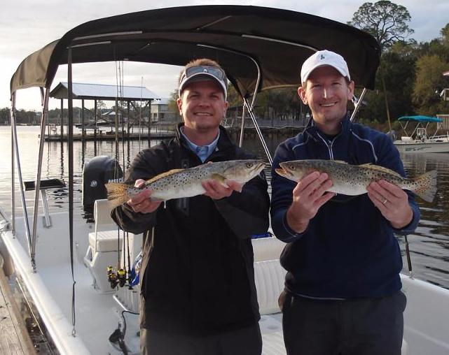 | Matt Mollet and Courtney Reijo from Gainesville, FL, landed a trout and flounder in the Steinhatchee 3rd Annual Fishing Challenge. |