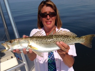 | Susan Purser of Midway, GA, & Charlie Walters of Keaton Beach, FL, limited out on trout & caught a few seabass. |