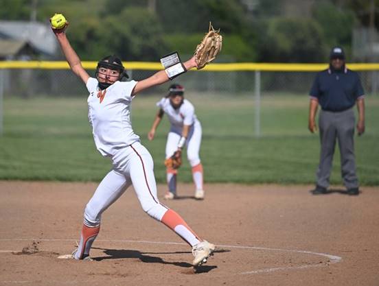 Vacaville’s Xochitl Atayde throws a pitch to get her 500th high school career strikeout during a softball game last week.