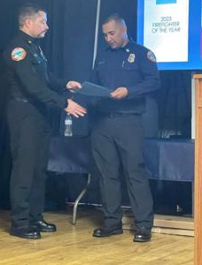 SCFD 2023 Firefighter of the Year Engineer, Luis Rivera. Rivera joined the SCFD in 2020 and has been instrumental in a number of projects including preserving the department's history, updating training resources, and is described by his peers as a leader to model. Congratulations Engineer Rivera!
