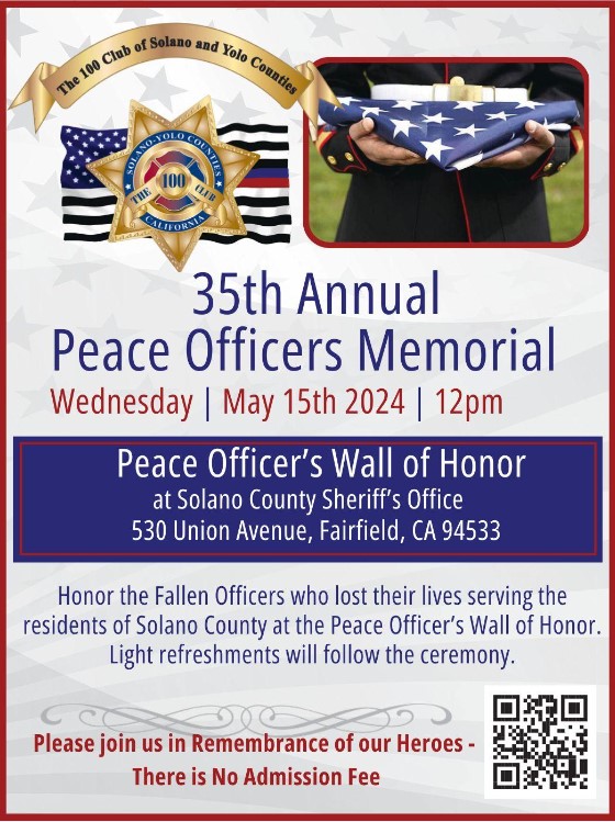 Thank you for your continued support of the 100 Club of Solano and Yolo Counties!