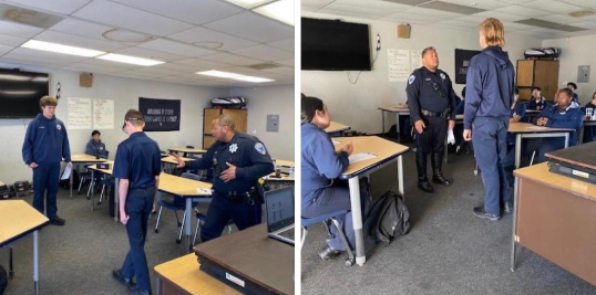 As part of the Career Technical Education program at the Public Safety Academy, Officer C. Turner recently stopped by the school to teach students about the dangers of Driving Under the Influence (DUI.) He also showed them some of the Field Sobriety Tests performed when someone is suspected to be DUI.