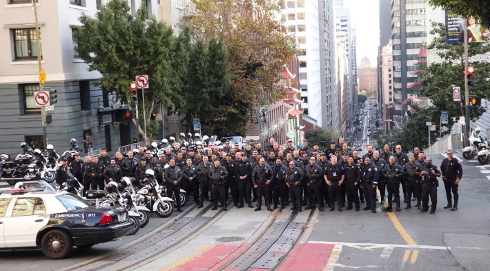 And, that’s a wrap. Group picture on our final POTUS detail. San Francisco PD Company K Solos with Fairfield PD, San Mateo PD, San Jose PD, San Mateo Sheriff’s Office, Atherton PD, Foster City PD, Burlingame PD, South San Francisco PD, Pacifica PD, Brisbane PD, Redwood City PD and Belmont PD. All these motor officers trained with the SFPD Solos over the past three months. It was a great experience working with them and we hope to continue working with them in the future. Thanks to everyone who came in to help get this done. | |
