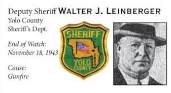 Description: On November 18, 1943, Deputy Sheriff Walter J. Leinberger, a popular deputy in the Broderick area (now known as West Sacramento) was shot to death outside a Bryte cabin where he had gone to arrest a man for burglary.