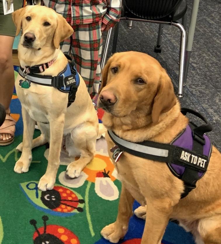 Kahu and Koel are both certified by Alliance of Therapy Dogs, who Laurie is affiliated with.