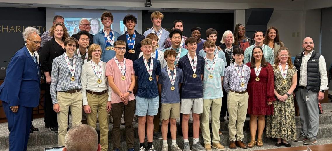 | | CCSD Board Recognizes Boys Swim SCHSL State Champions | | One more honor last week for Academic Magnet's newest state champions when the Boys Varsity Swim Team and their coaches were recognized at the Charleston County School District Board Meeting for their win last month at the SCHSL 3A State Championship. Additionally, Parker Hamilton '26 (100 Freestyle) and Logan Patterson '29 (100 Backstroke) were honored for their individual SCHSL state championships along with three other students in the district. Way to go, Raptors! | | What's on the Schedule... | |