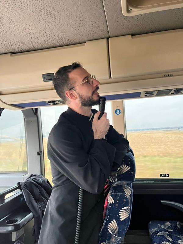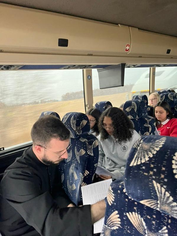 The bus trip was also a lot of fun and included both the boys and the girls. In the morning, Father Paolo led the students in Morning Prayer from the Liturgy of the Hours, followed by a lively and competitive Catholic Trivia game. On the way home, we had a very entertaining round of Charter Bus Karaoke (boys vs. girls!), and we closed the day together in prayer with a Rosary. It was a wonderful end to a great day!