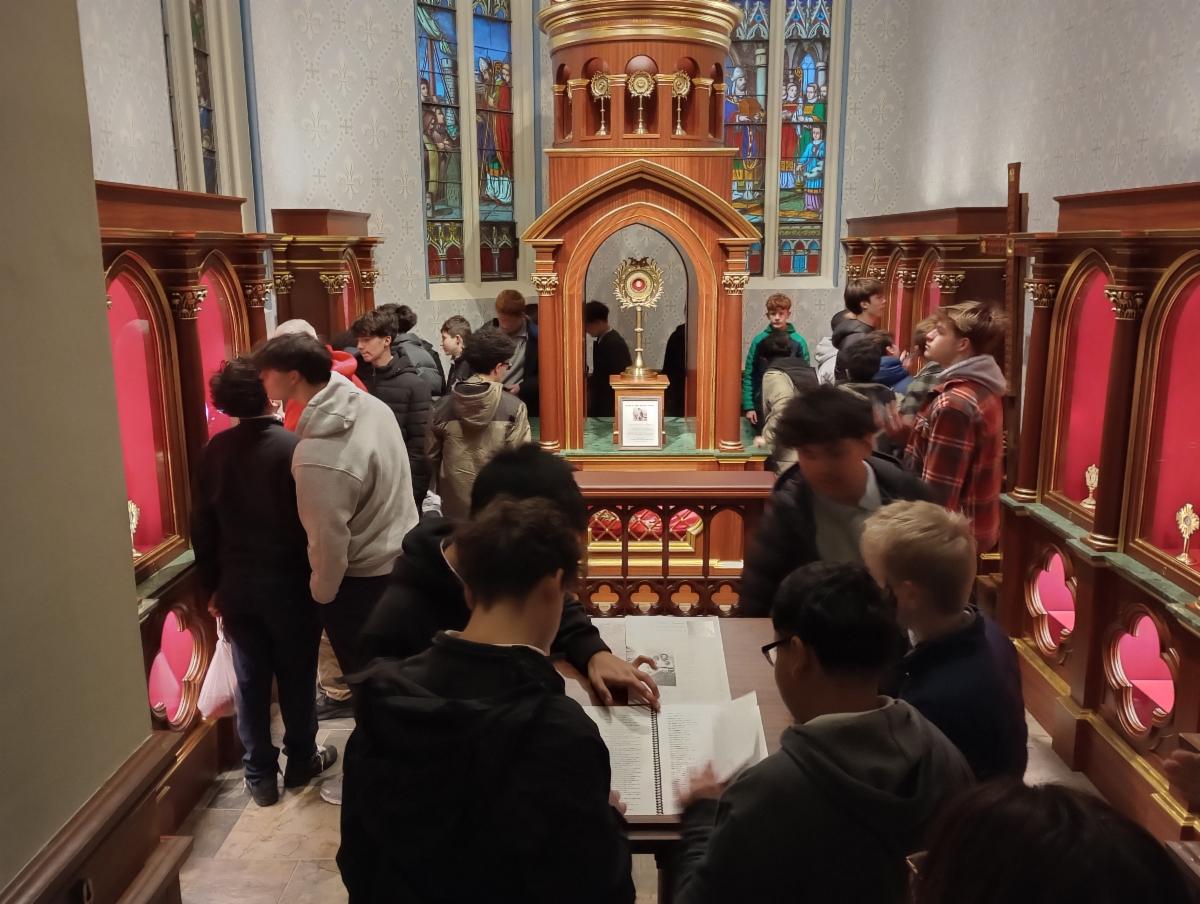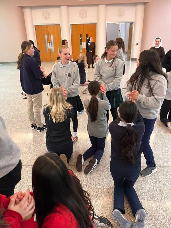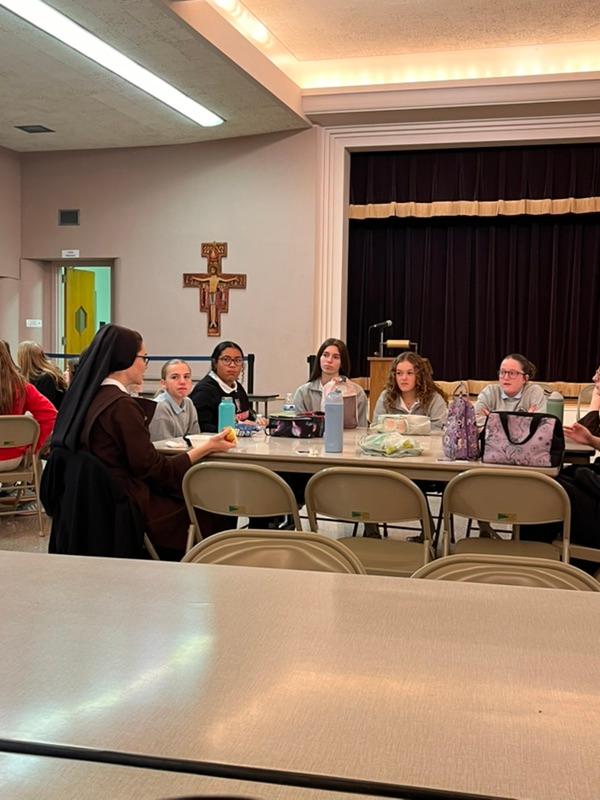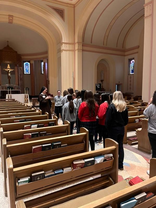 The 8th grade girls had a wonderful time during their visit to the St. Francis Convent in Mishawaka. The Sisters of Saint Francis of Perpetual Adoration graciously welcomed us and showed us around their beautiful facilities. Sr. Fiat gave us a tour, we spent time in Adoration, and Fr. Paolo celebrated Mass for us. We then enjoyed lunch with several of the sisters and novices. The sisters shared their vocation stories, hosted a thoughtful question-and-answer session, and even led us in a lively versions of “Ships and Sailors” called "Nuns and Sisters," which was a huge hit!