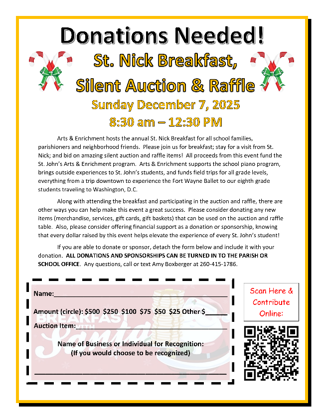 If you would like to donate, please make sure you designate Saint John the Baptist, Fort Wayne on the donation form. That ensures the funds come directly to our school. St. John the Baptist Catholic School is especially grateful to our donors who fund the SGO's for us. Without their help and support, this source of aid would not exist for our school.