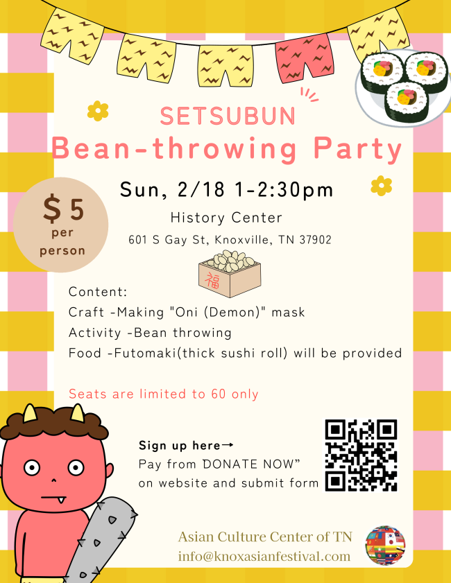 Asian Culture Center of TN is a 501(c)3 Non-Profit and your donation is TAX deductible. Let's make an impact together to EAST TN community. Donate NOW!