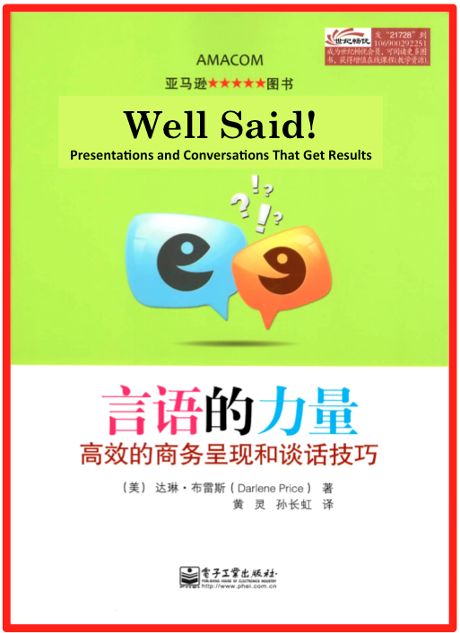 If you would like to learn more about handling Q&A with confidence and finesse, or how to deliver powerful persuasive presentations, please read my book Well Said! Presentations and Conversations That Get Results (available in Hardcover, Kindle, and Audio).