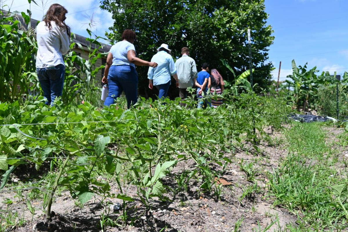 | | Member Jenna Mae leading a farm tour of Land Back Urban Farm in Louisiana as part of the Okla Hina Ikhish Holo Project. Photo Credit: Sophia Lovato / WECAN | |